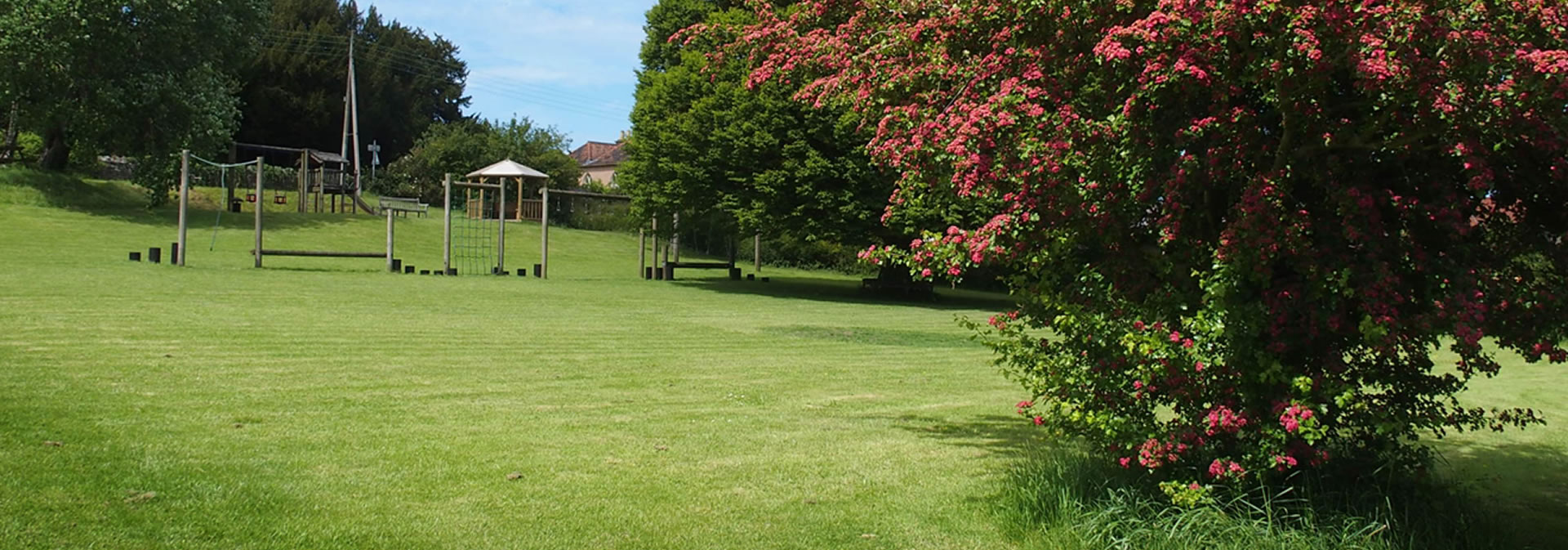 Opposite the Church is a small park/recreation ground which is on the site of the old primary school playing field. In the park there is children’s play equipment including swings, infant swings and a multiplay climbing frame, together with a timber activity trail. There is also a boules pitch, a basketball net, a netball post, a timber gazebo/shelter and several seats and picnic benches. A path has been built linking the entrance to the boule pitch and then on to the infant swings area and gazebo, giving easier access to the lower field.